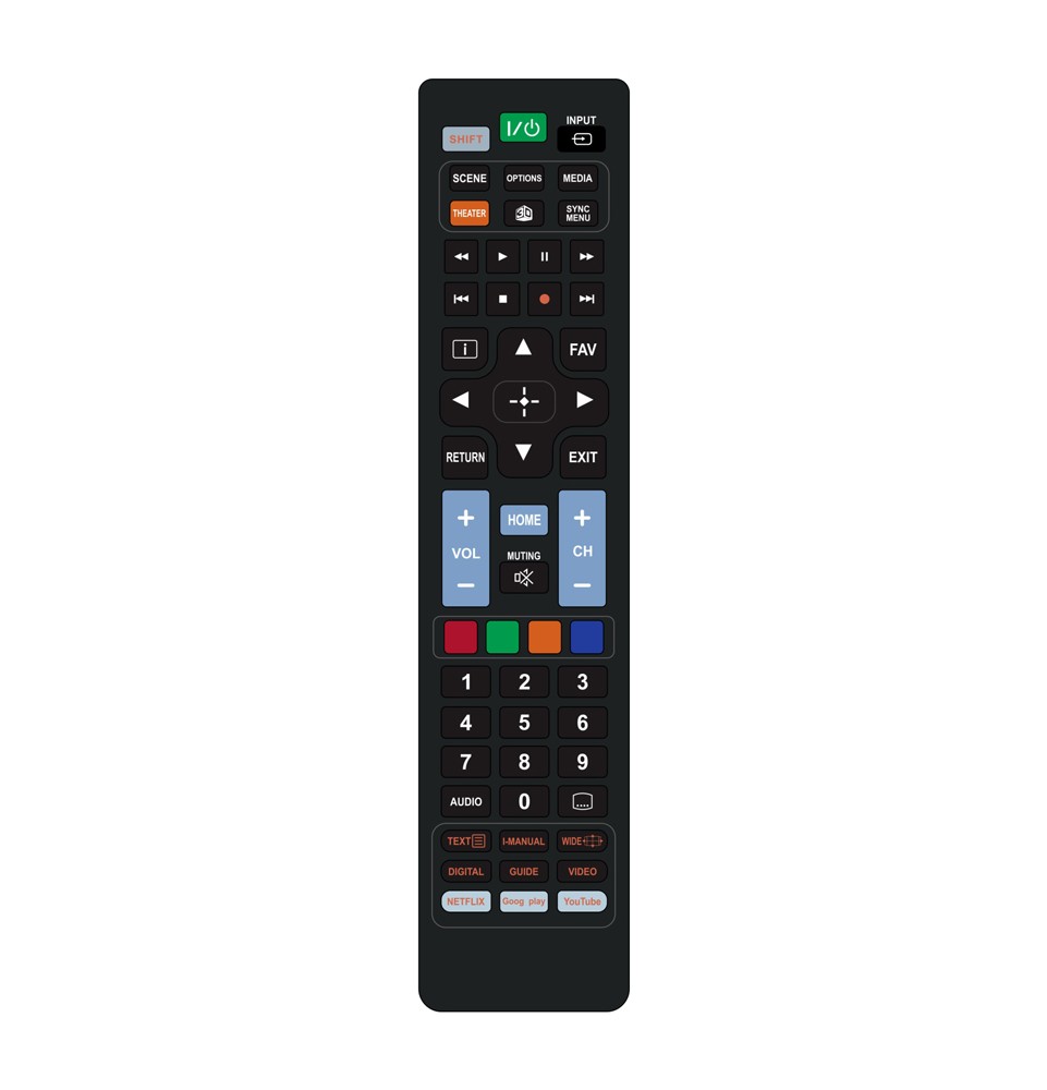 Εργονομικό χειριστήριο τηλεόρασης το οποίο υποστηρίζει όλες τις λειτουργίες της τηλεόρασης, συμπεριλαμβανομένου και του teletext. Επιπρόσθετα, εξοπλίζεται με dedicated πλήκτρα για εφαρμογές των smart TVs.